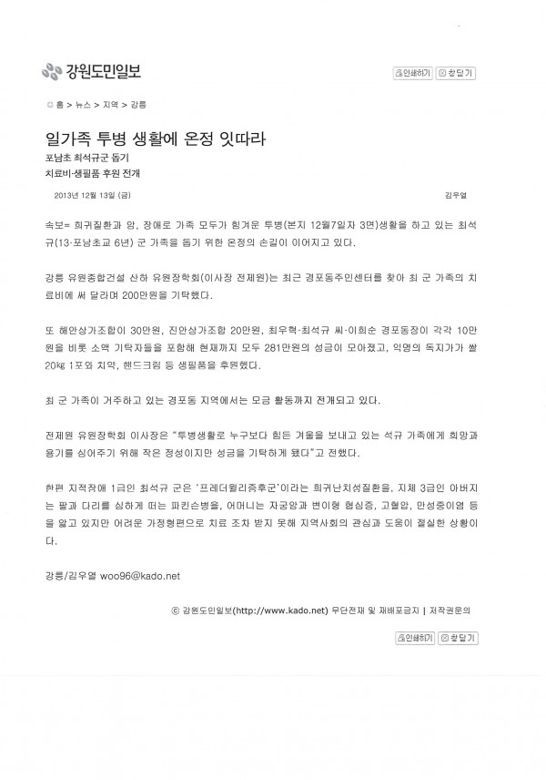 2013.12.10 유원장학회에서는 최석규학생을 위해 후원금을 전달하였습니다.